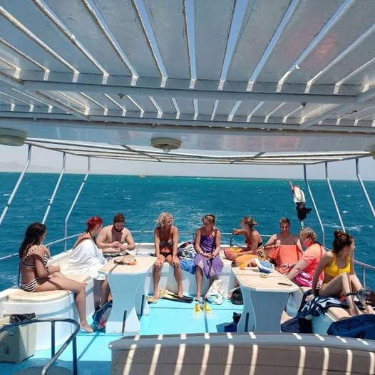 Mit einem modernen, sauberen Boot fahren wir zum Hausriff, wo Delfine beheimatet sind.