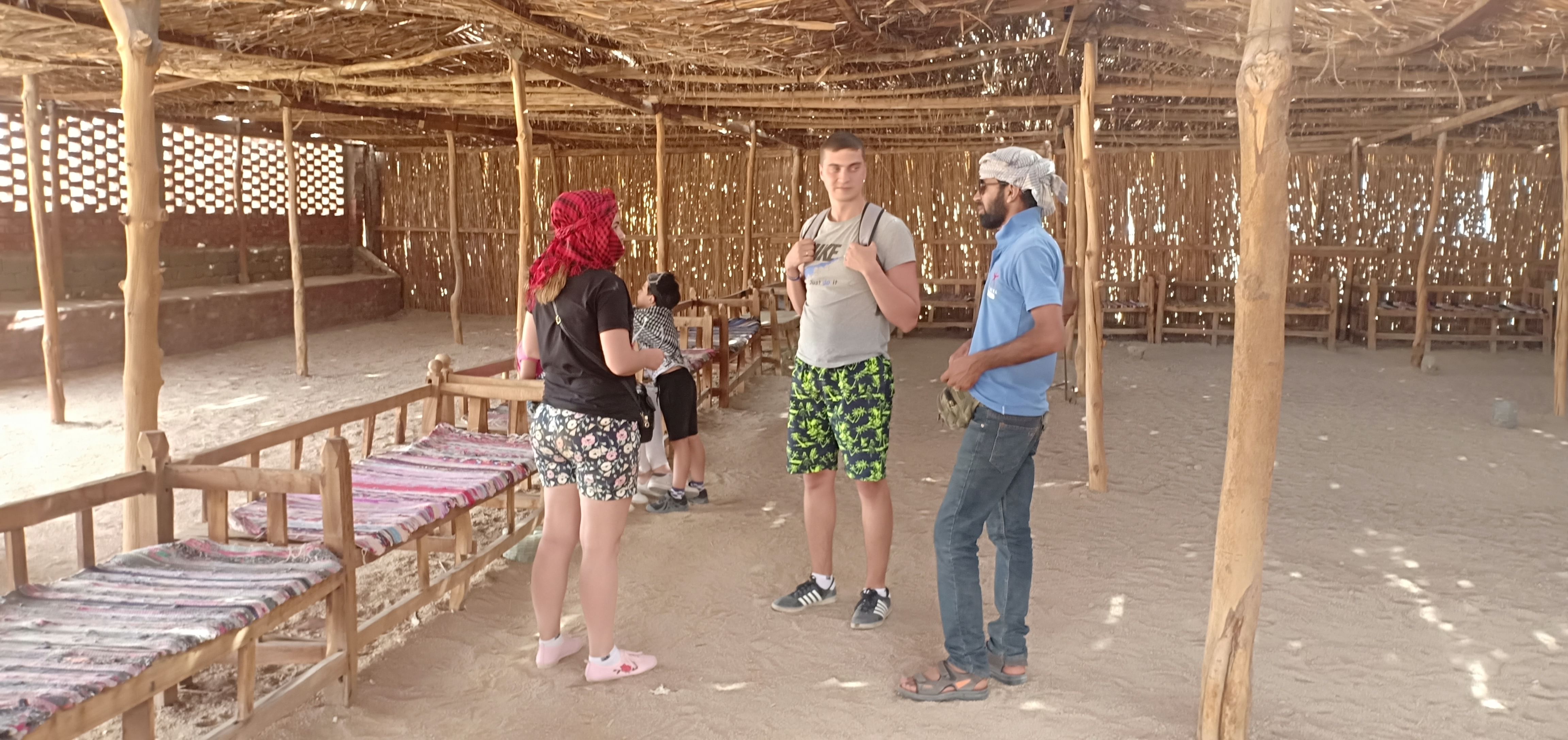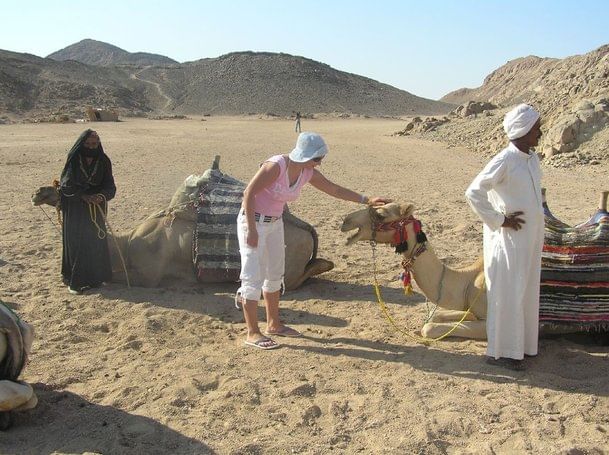 Gegen 13 Uhr werden Sie mit dem Jeep vom Hotel abgeholt. Sie fahren ca 45 Minuten durch die Wüste, wo sie Beduinensdorf erreichen. In der Nähe vom Elshaib Berg, dem höchsten Berg in der arabische Wüste würden wir eine Pause machen, wo sie die Fatamorgana sehen und die Sanddüne fotografieren können. Im Beduinensdorf reiten Sie Kamele, trinken Tee, rauchen die Wasserpfeife. Unser Safariführer gibt Ihnen eine Idee übers Beduinenleben – die Frauen bringen das Wasser vom Brunnen, sie melken die Kamele, backen das Brot, weben die Teppiche. Die Frauen haben eine grosse Rolle beim Wüstenleben. Sie treiben auch die Apotheken mit Naturprodukten, die Sie aus der Wüste gewinnen. Sie können die dort auch kaufen, zum Beispiel, bekommen sie Produkte um die Zähne weiss zu machen. Sehr populär ist auch natűrliches Deodorant....