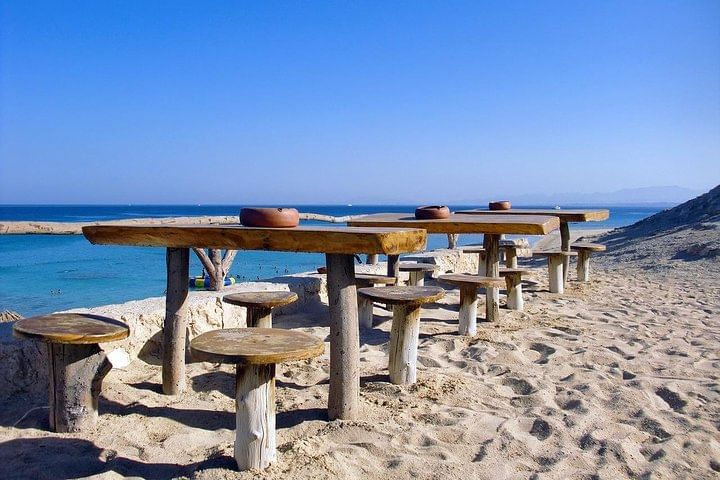 Der Bus holt Sie von Ihrem Hotel ab und bringt Sie zum Hafen. Vom Hafen ist das zirka eine Stunde Bootfahrt bis Sie Mahmya Insel erreichen.Dort werden Sie mit kleineren Boots zum Strand gebracht. Dort können Sie sich unter einem Schirm auf Matratzen bequem machen.