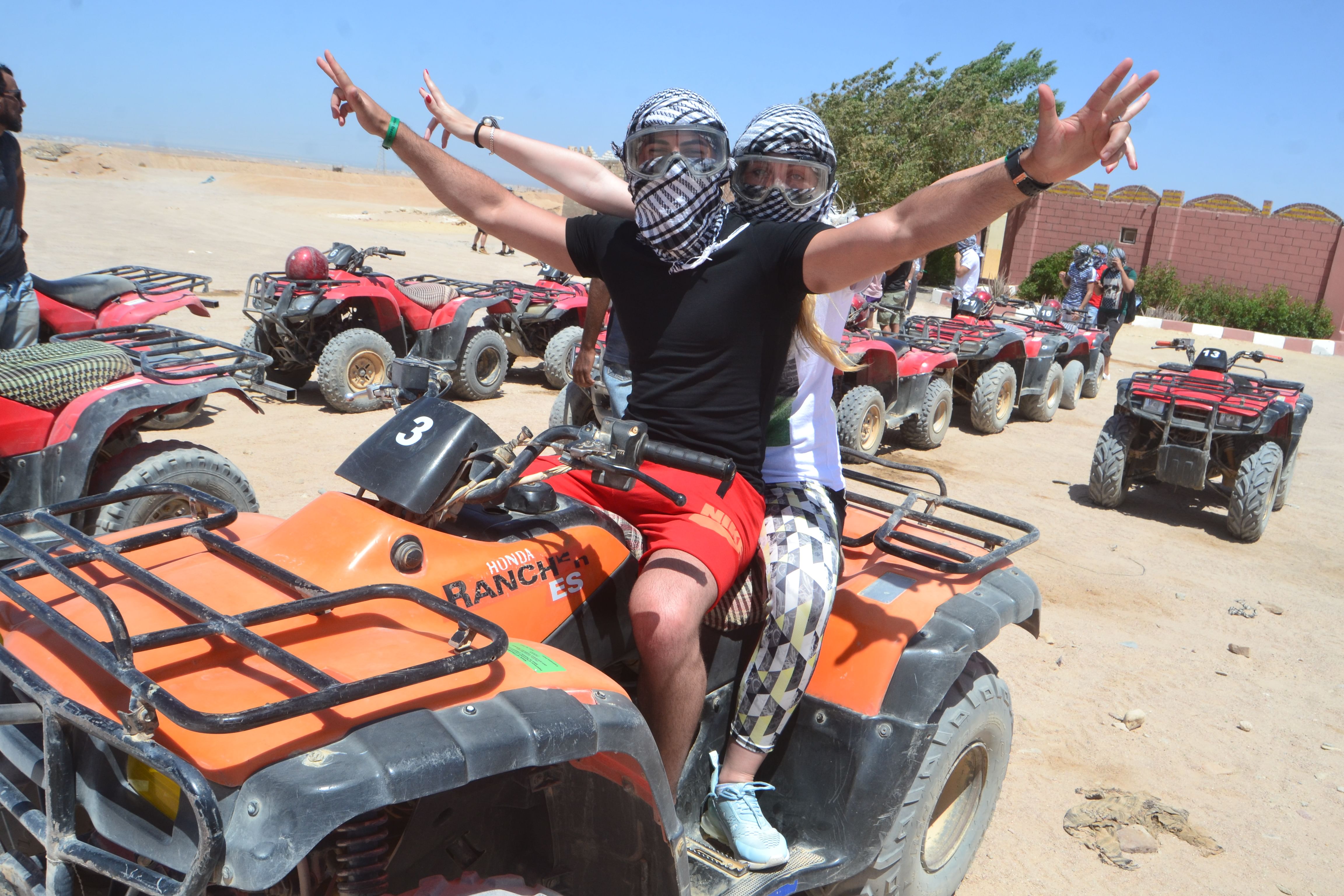 Fahren Sie Quad, Buggy, reiten Sie auf einem Kamel und genießen Sie den Sonnenuntergang in der Wüste.