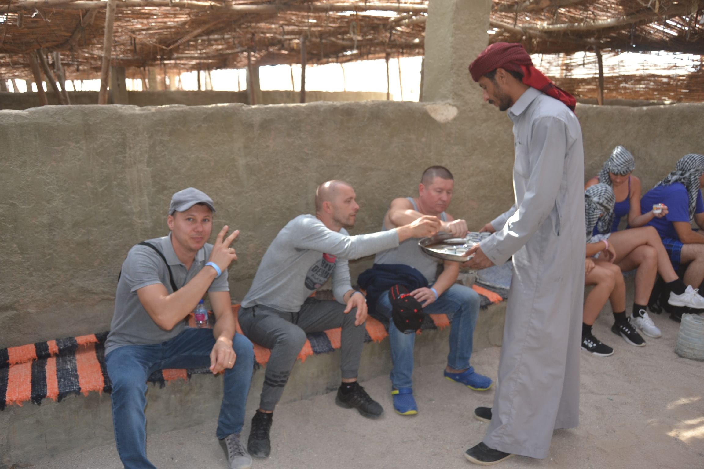 Sie werden mit dem traditionellen Tee begrűsst, Kamele reiten und bisschen Shisha rauchen. Ihr Safarifűhrer sagt ihnen űber Beduinen, űber das Leben in der Wűste, űber die Tradition. Sie werden dann mit dem Quad zur Quadstation zurűckfahren.Der Bus bringt sie gegen Mittag ins Hotel.