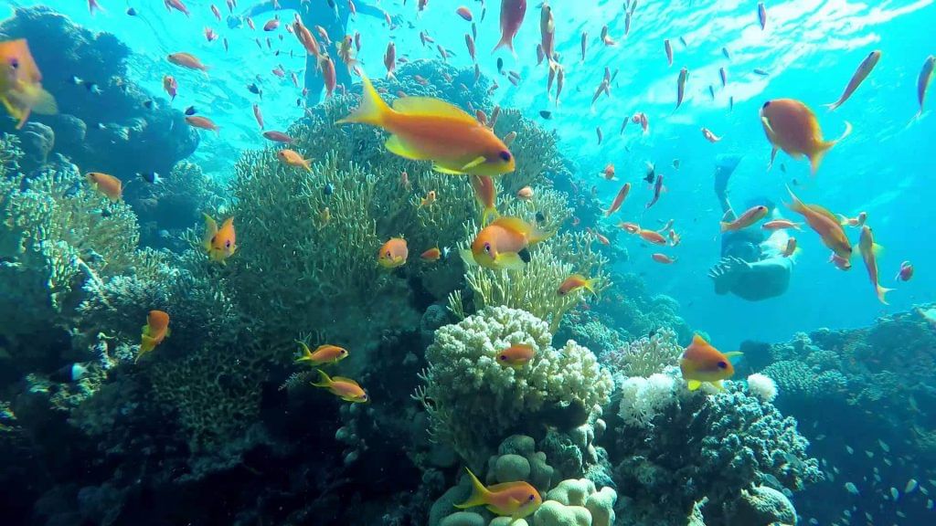 Die Umgebung der Insel Tiran, ein Teil des Ras Mohamed National Parks, beherbergt wunderschöne Riffe mit Tausenden von bunten Fischen und anderen Meerestieren und zieht daher viele Schnorchel- und Tauchfans aus der ganzen Welt an.
